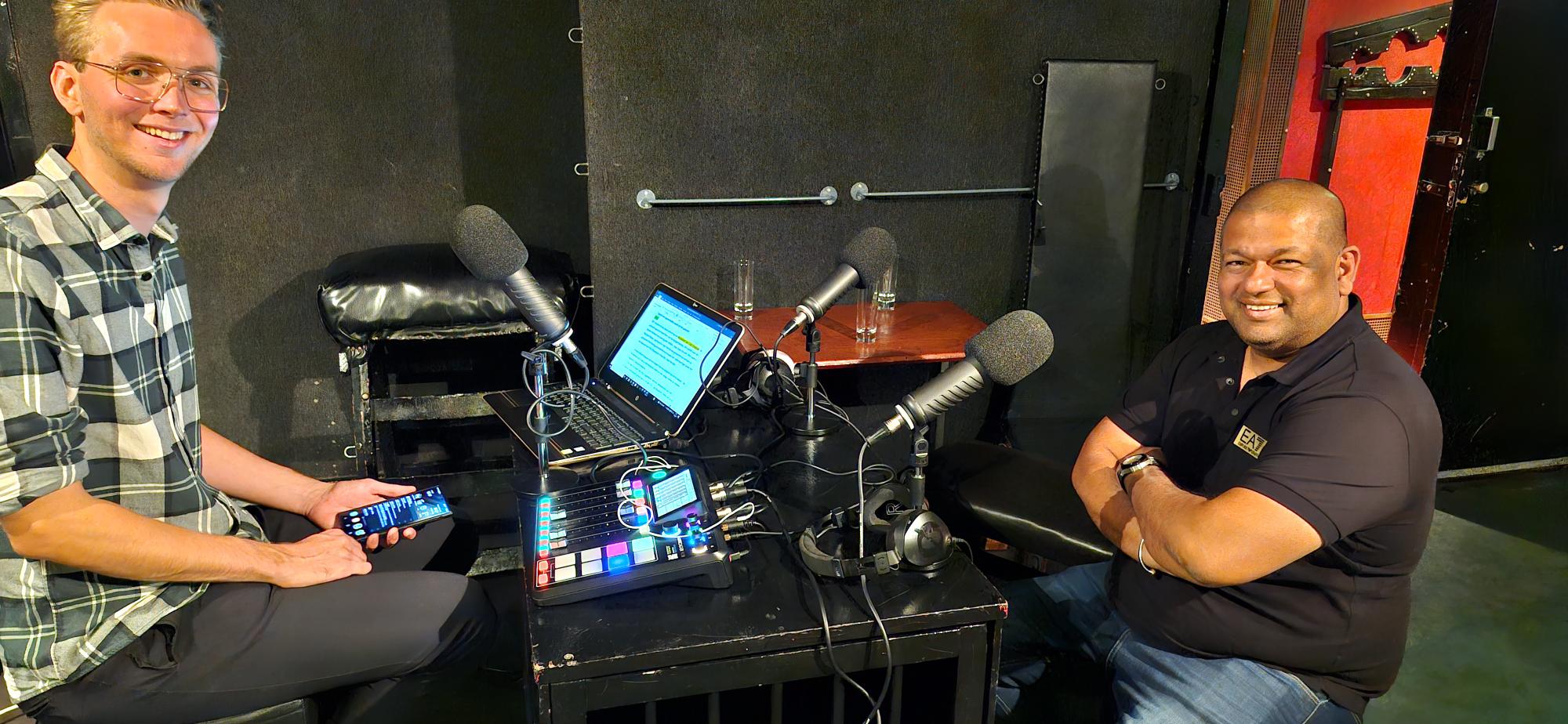 Bastiaan Meijer van PodBast met Dew, de eigenaar van Showboat. Apple versie PodBast afleveringen over ShowBoat